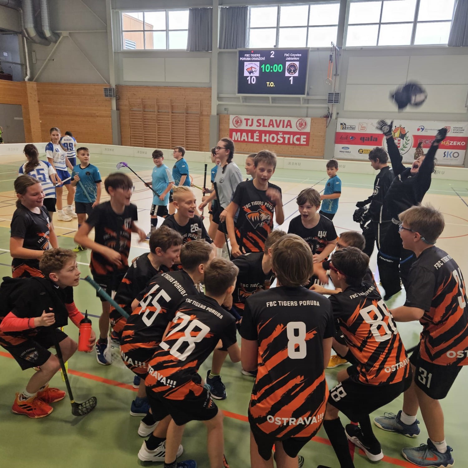 MLADŠÍ ŽÁCI ORANŽOVÍ: V neděli 23.11.2025 jsme pořádali turnaj kategorie mladší žáci ve sportovní hale Malé Hoštice. Obsazení turnaje bylo velmi silné, zejména tým FBC Letka již při nástupu vypadal velmi ambiciózně. Naši hráči po splnění povinnosti s přípravou turnaje se vrhli do rozcvičky a rozběhání a proti favoritům z FBC Letka nastupovali s přáním předvést se v co nejlepším světle. Což se také stalo, ale bohužel na favorita to nestačilo. Přesto nelze nevidět snahu našeho týmu makat celý zápas a to i za stavu ne zcela vyrovnaného. Náš tým dokázal vstřelit i dvě branky a mnohými obrannými souboji a krásnými přechody do útoku dokázal potrápit tým soupeře. V druhém zápase se naši hráči postavili proti soupeři z Petrovic a jejich výkon byl opět velmi kvalitní a i přes porážku viděli naši fanoušci tým, který chtěl hrát a nebál se i tvořit hru. Ve třetím zápase proti týmu z Jablůnkova se předchozí zkušenosti zúročili a náš tým předvedl úžasnou jízdu celým zápasem, když hráči dominovali po všech stránkách a zápas dovedli do zaslouženého vítězství. V posledním zápase proti Paskovu pak chybělo to pověstné štístko. Zápas byl oboustranně vyrovnaný a kdyby naši hráči proměnili alespoň pár šanci, které měli, vítězství by bylo jejich. Ve všech zápasech chytal Martin Tásler a svým velmi dobrým výkonem podporoval snažení hráčů v poli a patří mu obrovský dík.