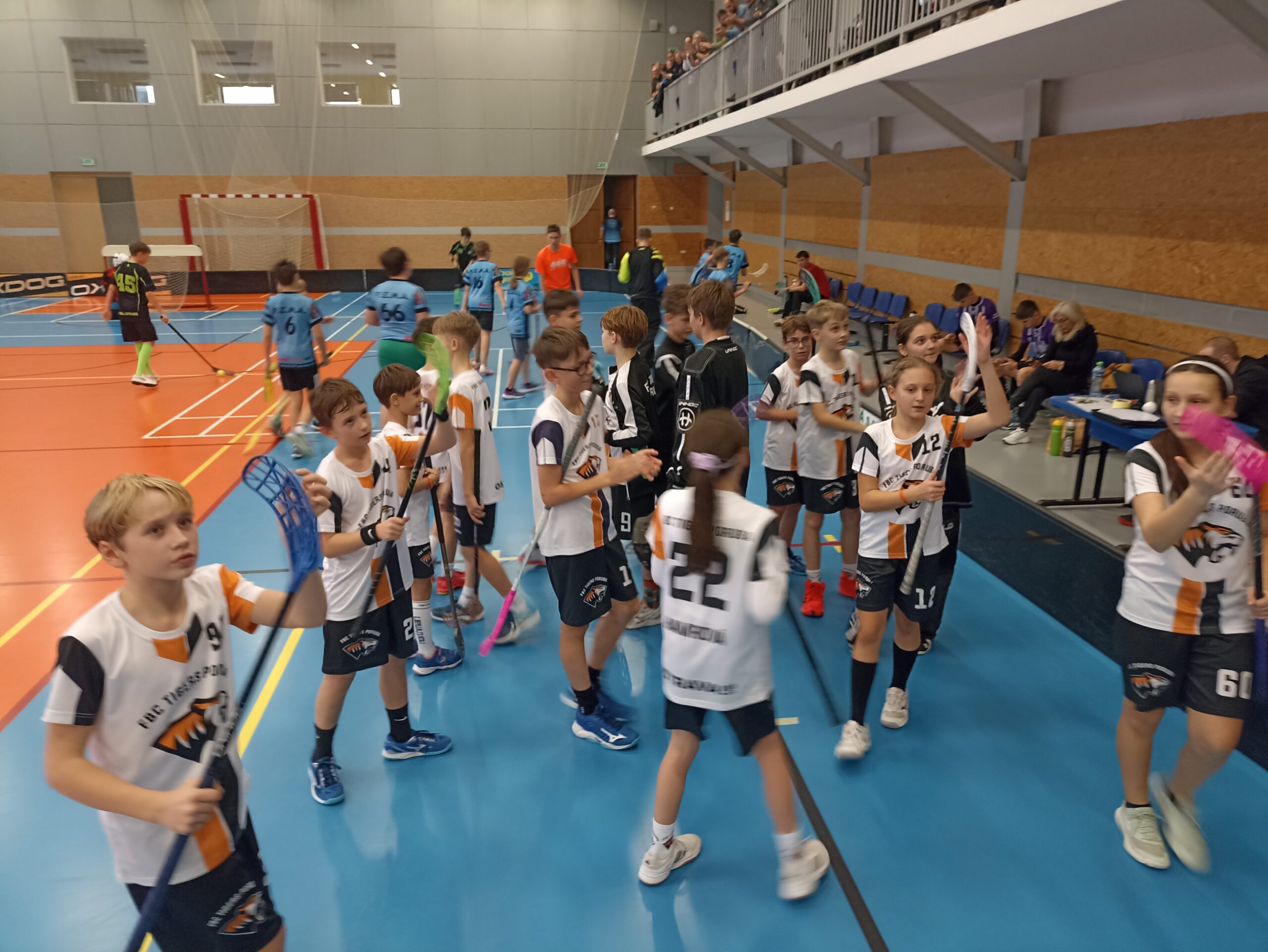 ORANŽOVÍ: V sobotu se mladší žáci oranžoví představili na palubovce sportovní haly v Orlové v dalším z řady ligových turnajů. Od počátku sezóny se do mužstva postupně zapracovávají nově příchozí hráči a ti již podruhé dostali šanci okusit zápasové tempo a atmosféru. První zápas se hrál již v brzkých ranních hodinách a my trenéři jsme měli obavy, že výkon bude tradičně ospalý, avšak opak byl pravdou. Tedy minimálně excelentní výkon Ondry v bráně s nulou na kontě jistě nenesl známky ospalosti. Soustředěným výkonem jsme prvního soupeře, kterým bylo mužstvo Orlové porazili konečným skórem 2:0. Další zápas s mužstvem Orca Krnov byl přesně z těch, které jsme mohli dotáhnout do úspěšného konce, ale namísto tvorby gólových příležitostí jsme kupili příliš mnoho individuálních chyb, které soupeř trestal, a tak jsme si zápas prohráli sami konečným výsledkem 1:5. V dalším zápase nás čekal soupeř z popředí průběžného pořadí soutěže, a to se projevilo jak na průběhu hry, tak i na konečném výsledku zápasu, který jsme prohráli 3:7. Ovšem, kdo čekal podobný průběh zápasu i se silným mužstvem Torpeda Havířov, ten musel být velmi překvapen. Byl to zápas jako řemen a těžko říct, zdali nás soupeř podcenil, ale naši hráči si vytvářeli překvapivě velmi mnoho dobrých střeleckých příležitostí a mnohdy po krásných kombinačních akcích jsme šli do přestávky s vedením 3:0. Nutno ovšem uznat, že soupeř byl rovněž velmi aktivní a velmi často střílel téměř do prázdné branky, ale my jsme měli v bráně fantoma Martina, který podal naprosto fascinující výkon, škoda, že to nemohl vidět trenér brankářů Radim Beňovič, protože by musel být na své svěřence náležitě pyšný. Zápas jsme v elektrizující atmosféře dokázali dotáhnout do vítězného konce, a tak se mohlo začít slavit a nechyběla ani vítězná rybička.