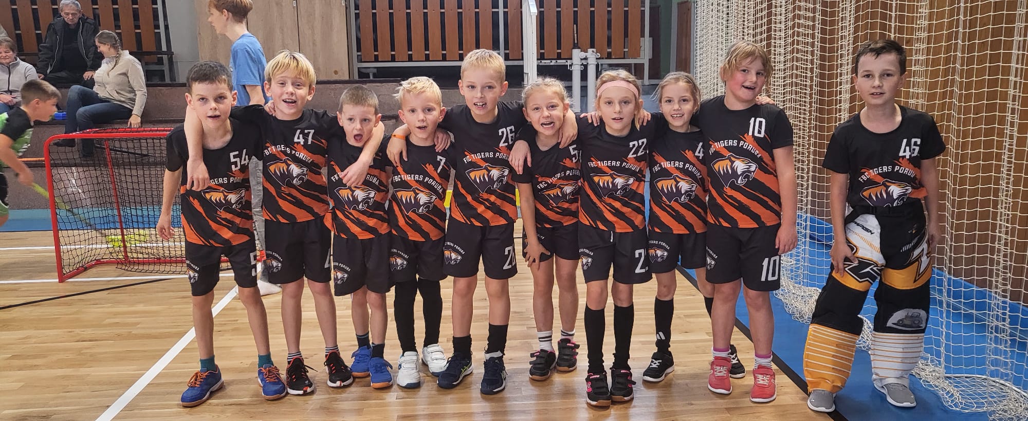 Po zářijovém turnaji v Jablunkově naskočila v sobotu 11.10. do své další ligové sezóny i naše přípravka. Letos s novinkou, kdy se výsledky zápasů neřeší, nikde neukazují ani nezaznamenávají. To ale neznamená, že by zápasy nebyly atraktivní a děti v nich méně bojovaly. I přesto, že je začátek sezóny a většina dětí nemá ještě žádné nebo jen malé zápasové zkušenosti, předváděla naše tygří přípravka v každém zápase bojovnost, radost ze hry, soustředění a snahu poslouchat pokynů trenérek😊. V bráně nás jistili dva naší tygříci, výborný Vojta👍 a úplný nováček Maty, který nás překvapil svým klidem a rozvahou🤭. Všechny zápasy byly vyrovnané, moc nás bavily a těšíme se na další. Moc děkujeme všem tygřím rodičům za pomoc s uspořádáním tohoto turnaje, moc si toho vážíme🤩. Velký dík patří Vojtovi Žačkovi a Adi Keberlové, že si našli čas ve svém nabitém programu a byli s náma😍. Nemalý dík je i pro Peťu Blahuta, který kromě pomoci s přípravou se neúnavně věnoval všem našim tygříkům mezi jednotlivými zápasy, neměl to vůbec lehké 😅